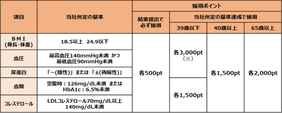 BMI、血圧、血糖、コレステロール、尿蛋白の結果を提出することでVitalityポイントを各500ポイント、結果が当社所定の基準を満たす場合は加算ポイントを獲得できます。