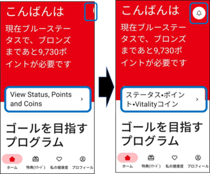 Vitalityアプリの文字が一部英語表記になったり、一部ボタンが押せません。